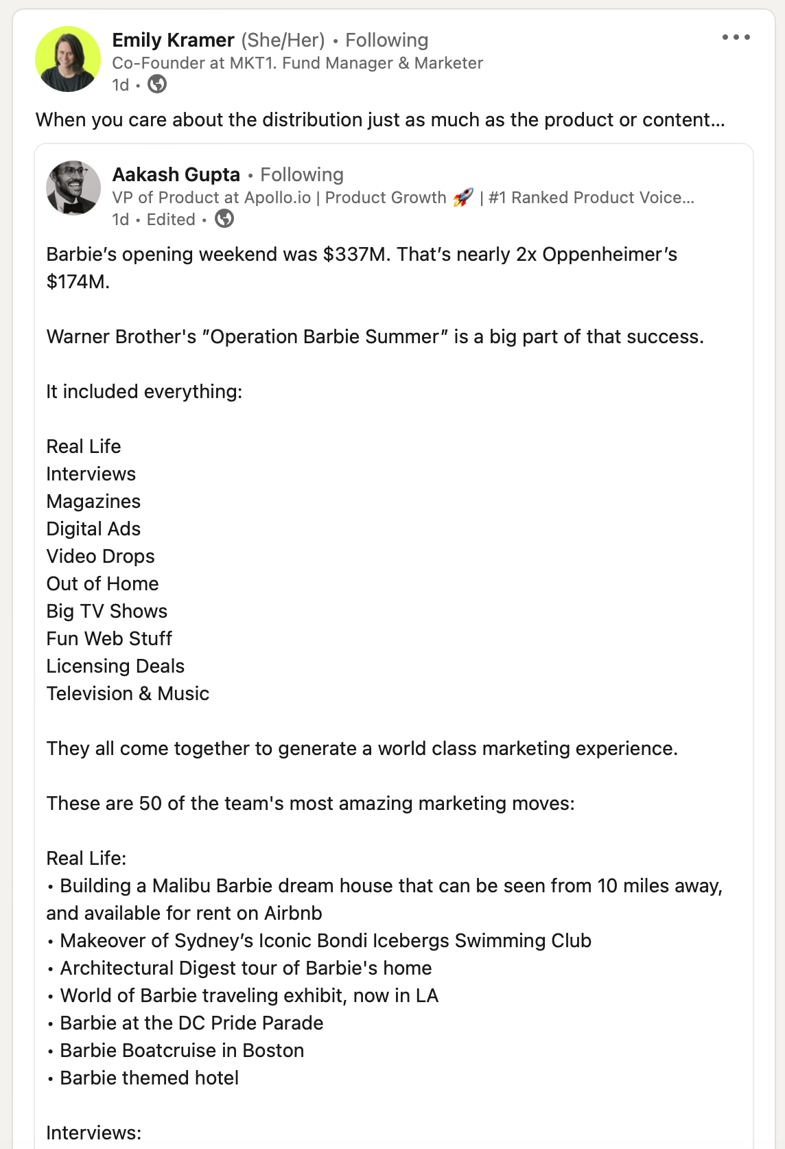 LinkedIn Post - Marketing Effort from Emily Kramer - https://www.linkedin.com/feed/update/urn:li:activity:7089656528730812416/